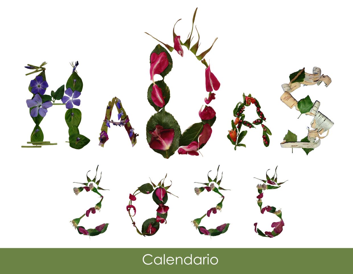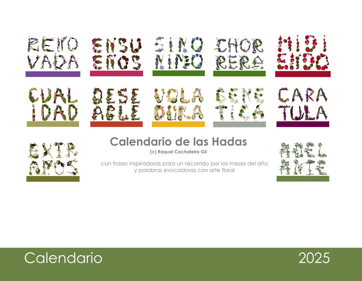 Calendario para 2025 «Calendario de las Hadas», con frases evocadoras y palabras con diseño de arte vegetal «Bonita Letra».